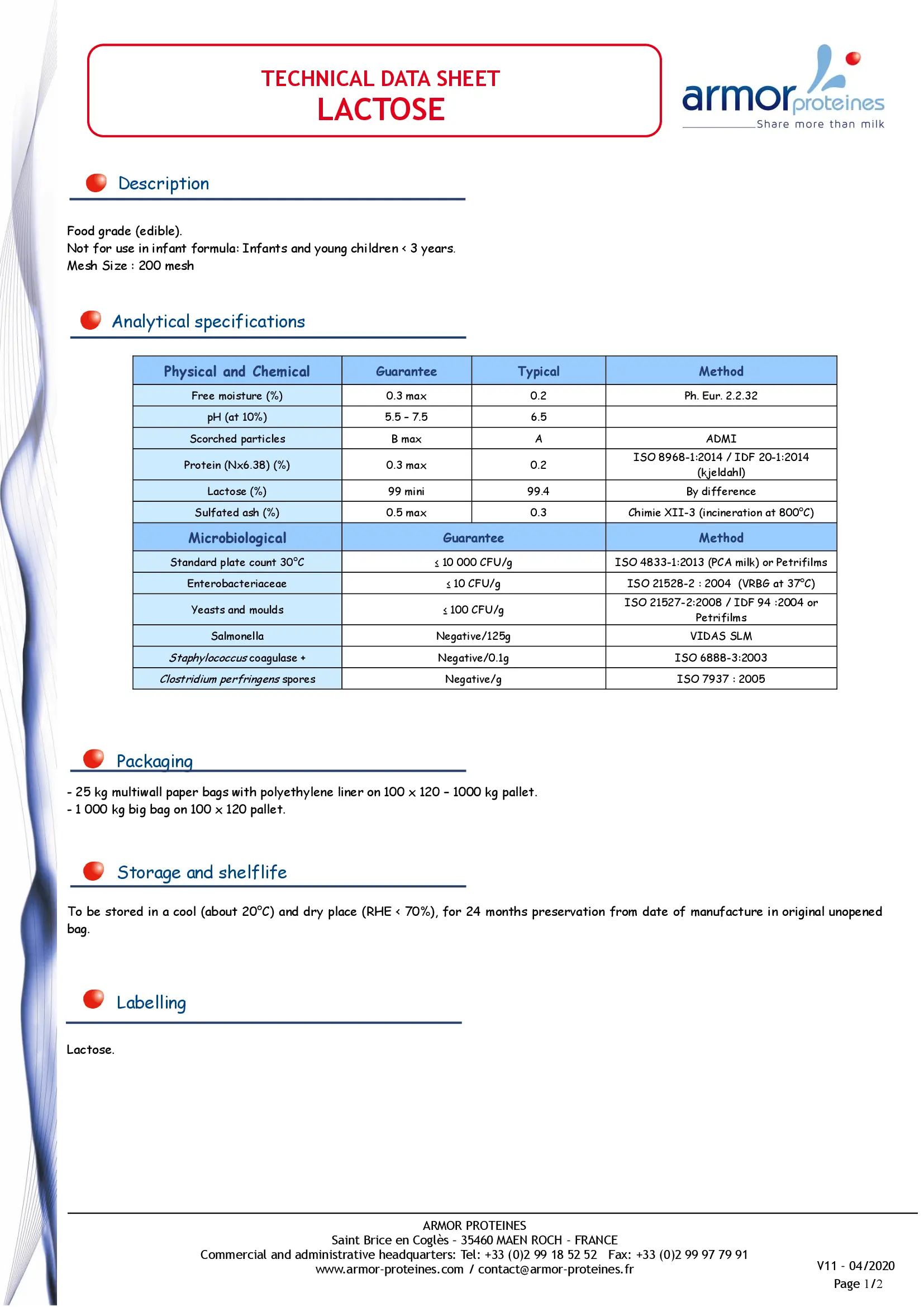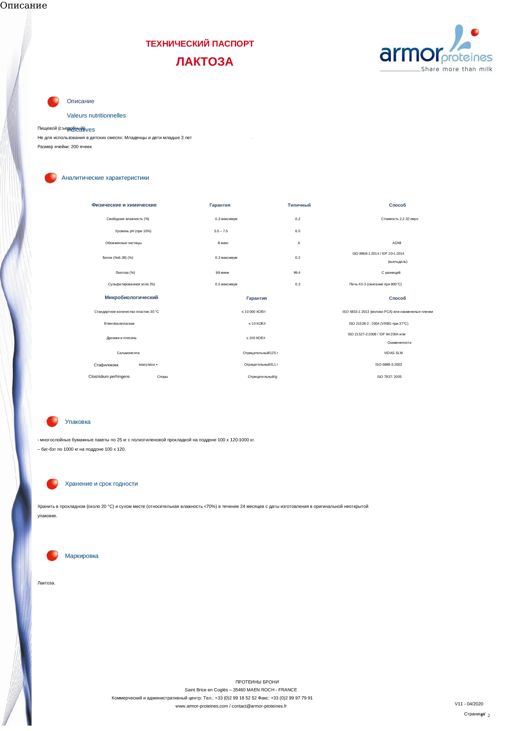 Применение: лактоза обладает рядом преимуществ, которые позволяют оптимизировать процесс производства: экономическая выгода за счет увеличения объема продукции, существенное улучшение потребительских характеристик продуктов, возможность уменьшить расход сахара в рецептурах делает продукты более диетическими, а увеличение питательности и биологической ценности, увеличение срока хранения, удобный формат порошка позволяют легко дозировать добавку, кроме того она не нуждается в особых условиях хранения и транспортировки.