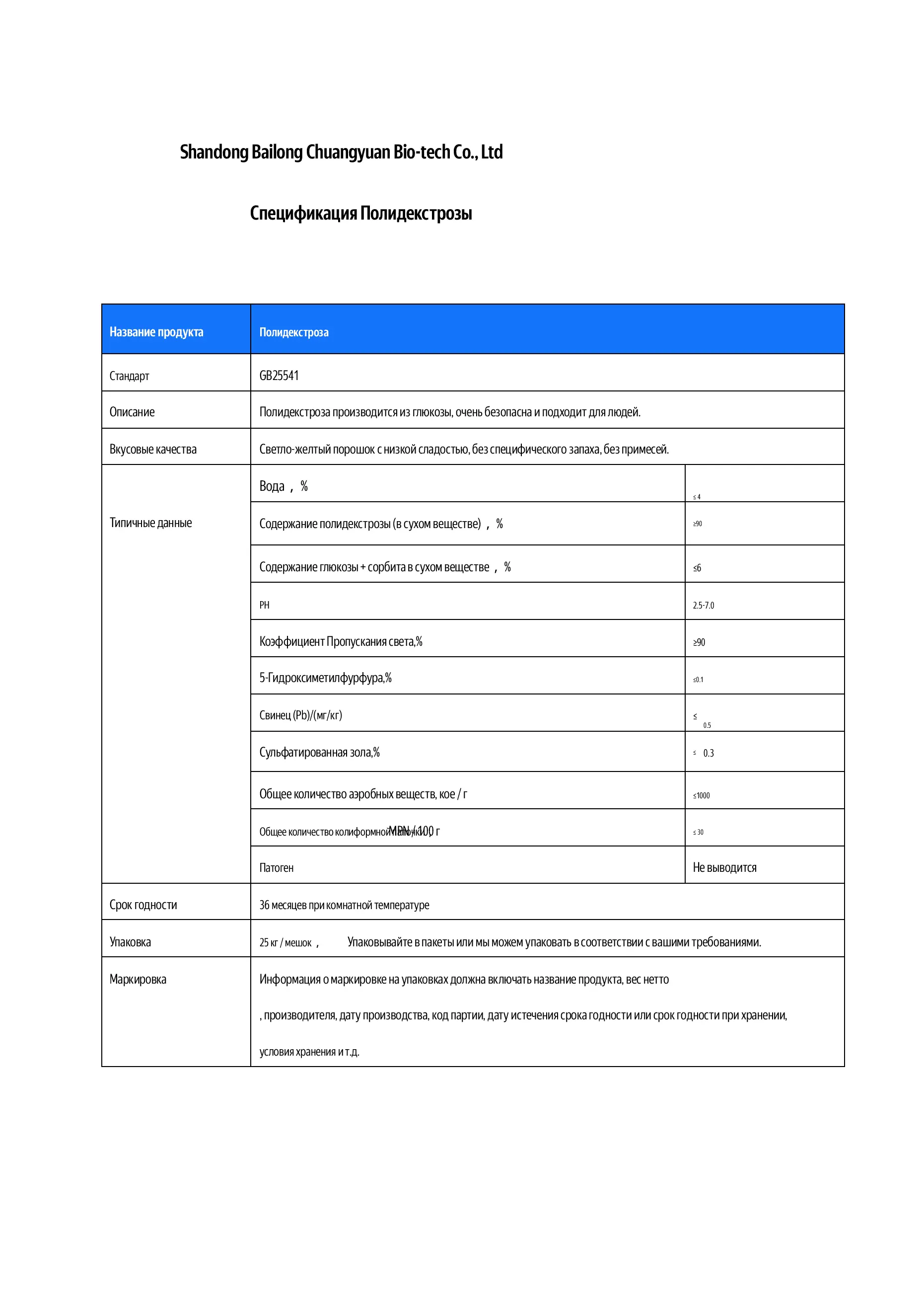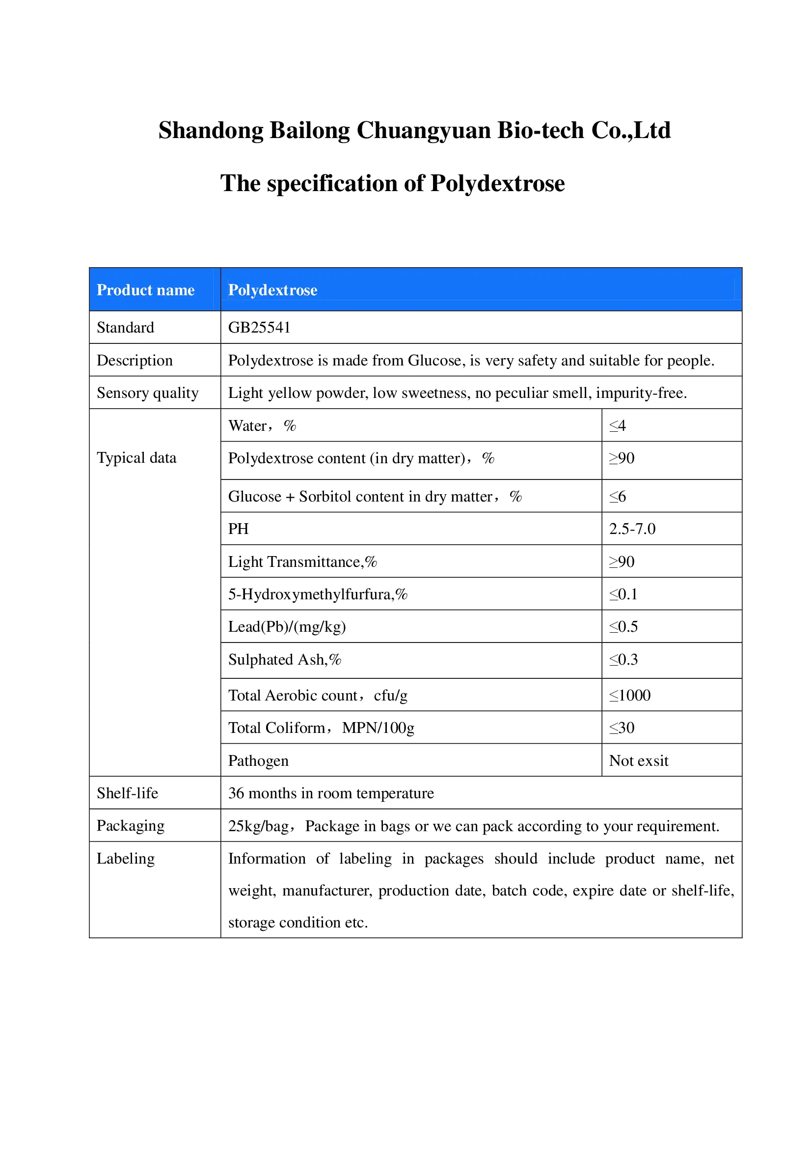 Применение: В качестве низкокалорийных наполнителей вместе с подсластителями. По технологическим характеристикам полидекстроза очень похожа на сахарозу, поэтому совместно с подсластителями может заменять сахарозу в очень многих низкокалорийных и диабетических продуктах.