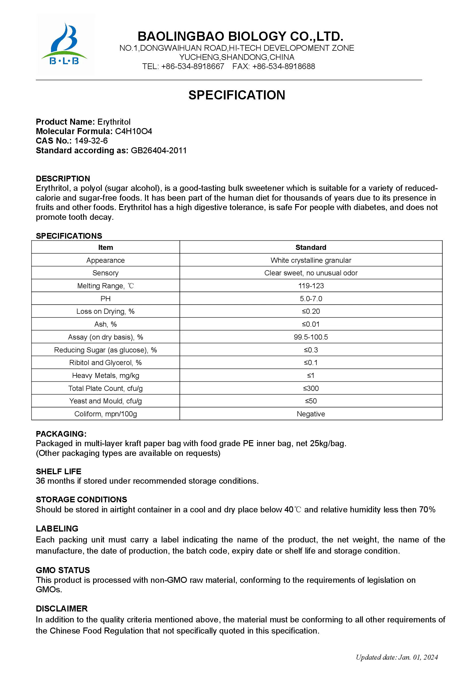 Эритрит (Erythritol), являющийся по химической структуре многоатомным спиртом, известен в мире как пищевая добавка E968. Он естественным образом присутствует в винограде, дыне и некоторых фруктах, в грибах, сыре, вине, пиве и соевом соусе. Для использования в промышленных масштабах полученную из растительного сырья глюкозу ферментируют при помощи дрожжей Moniliella pollinis, а затем фильтруют, кристаллизуют и сушат. В итоге образуется гранулированный порошок белого цвета, без запаха. Он менее сладок, нежели сахар (составляет лишь 60-80% сладости сахарозы) и менее калориен, а также устойчив к температуре. Кроме этого, он обладает охлаждающим эффектом, который действует лишь пока Эритрит не растворен в воде. В России, странах ЕС, Австралии, Новой Зеландии, Японии и других странах пищевая добавка Е968 разрешена. При этом она выполняет роль подсластителя, влагоудерживающего агента и стабилизатора.