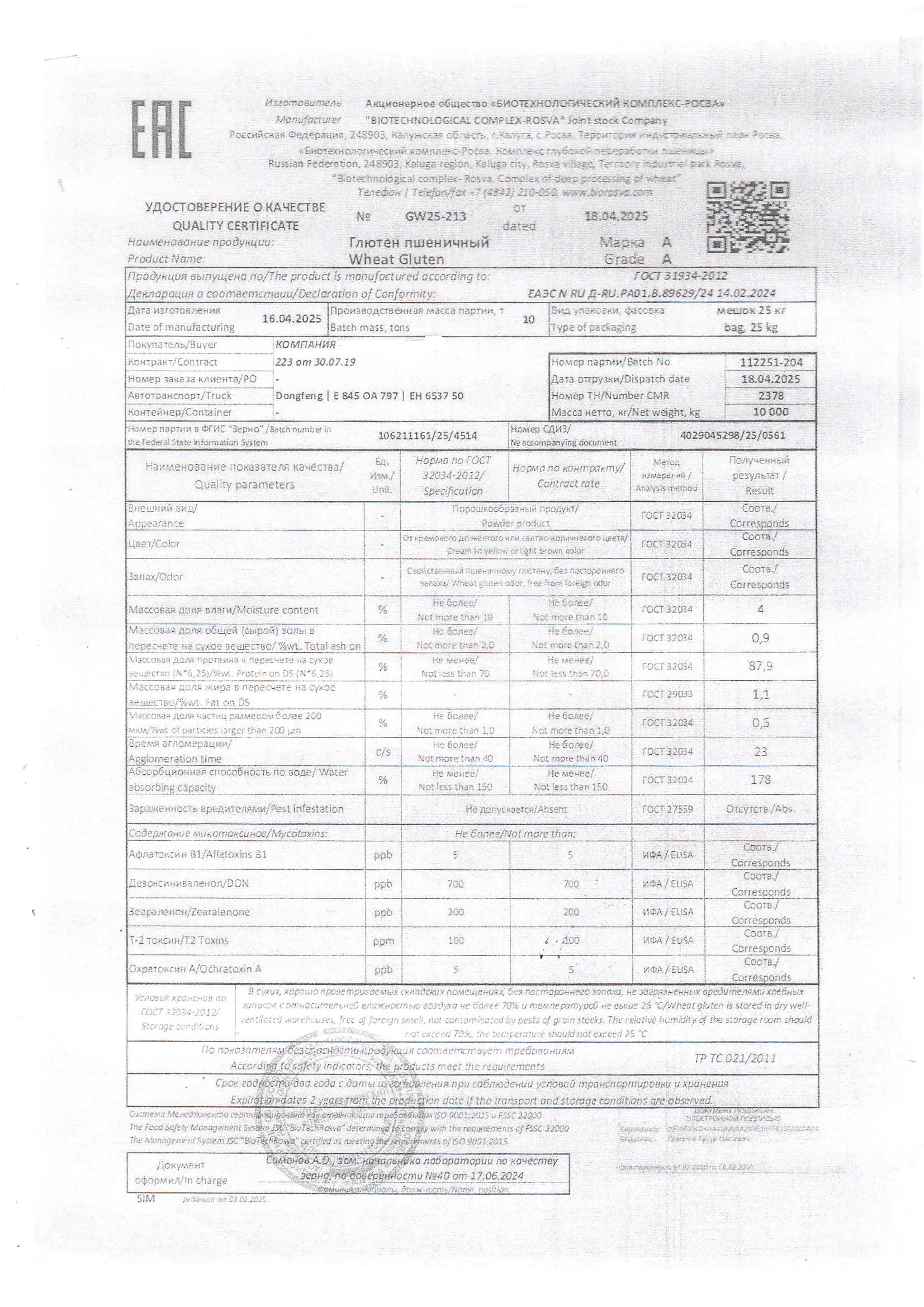 Применение: Пшеничный белок используется в составе большинства продуктов мукомольной, хлебопекарной, пищеконцентратной, консервной, мясоперерабатывающей и кормовой отраслях. Глютен применяют для повышения мягкости и пышности мякиша в хлебобулочных изделиях и выпечке; в качестве загустителя в соусах, кетчупах, йогуртах; как консервант в хлебобулочных изделиях и мясных полуфабрикатах.