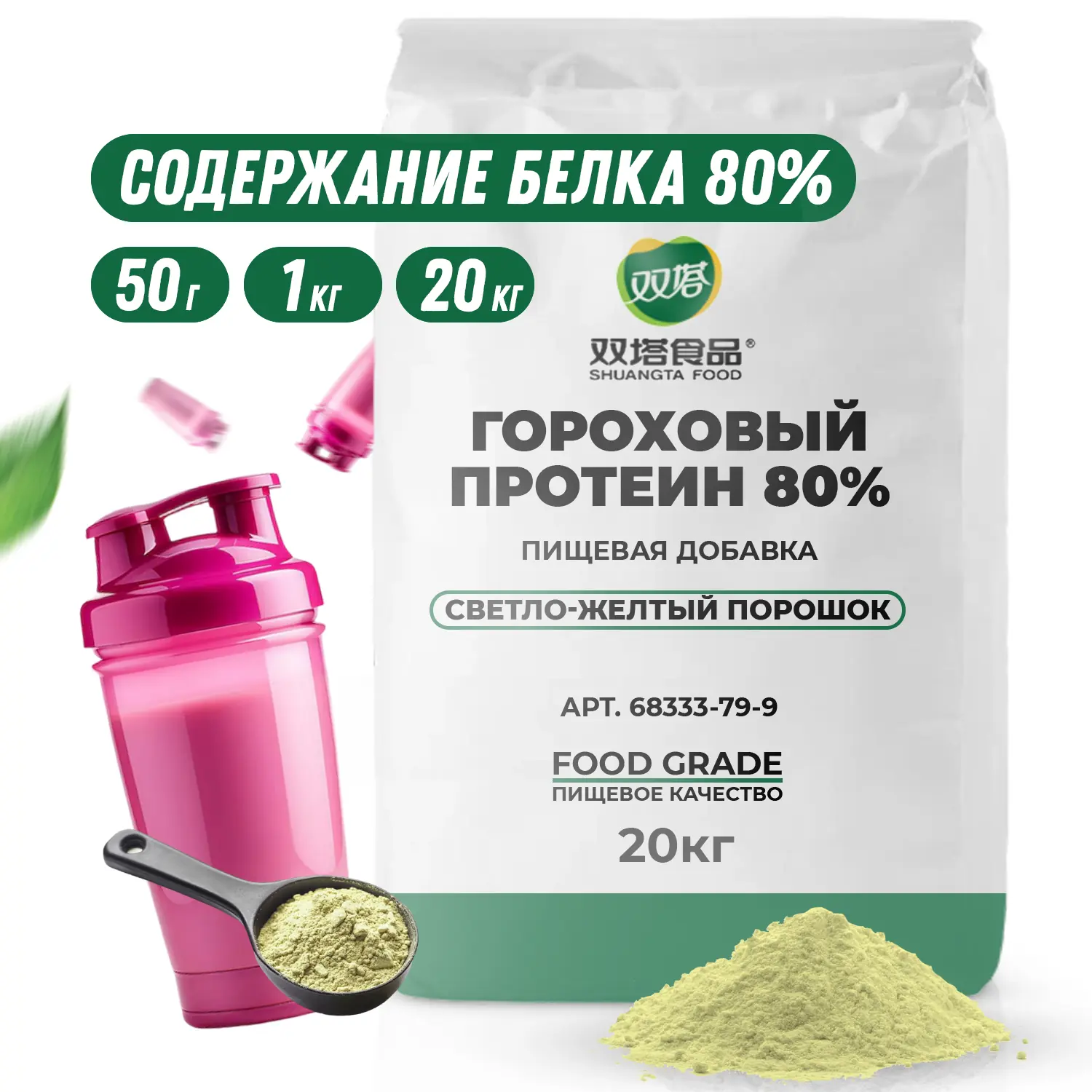 Гороховый протеин – полноценный источник белка, который содержит весь спектр ценных аминокислот. Получают его из зерен гороха посевного (Pisum sativum). Гороховый протеин наиболее часто используется в спортивном, диетическом или вегетарианском питании. Является идеальным источником веганского белка благодаря высокому содержанию протеина - 80% и высококачественному аминокислотному профилю. Практически не содержит крахмала и сахара. Является гипоаллергенным, не содержит глютен.