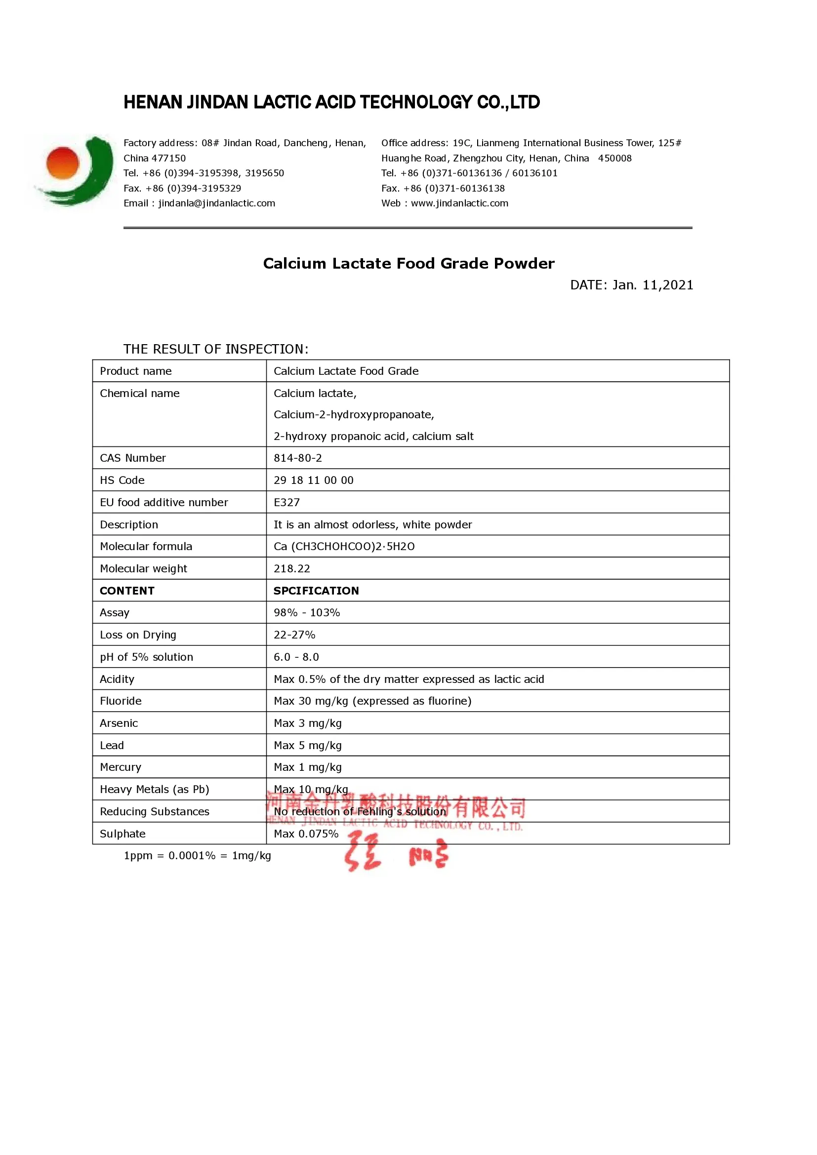 Применение: Лактат кальция хорошо растворим и легко усваивается, не раздражая слизистую оболочку желудка, поэтому он является хорошим донором кальция и используется для обогащения, например, фруктовых соков. Содержание кальция в лактате выше, чем в глюконате. Лактат кальция применяется в качестве питания для дрожжей в хлебобулочных изделиях и в качестве отвердителя для фруктов (в консервах), а также как заменитель поваренной соли, синергист антиоксидантов.
