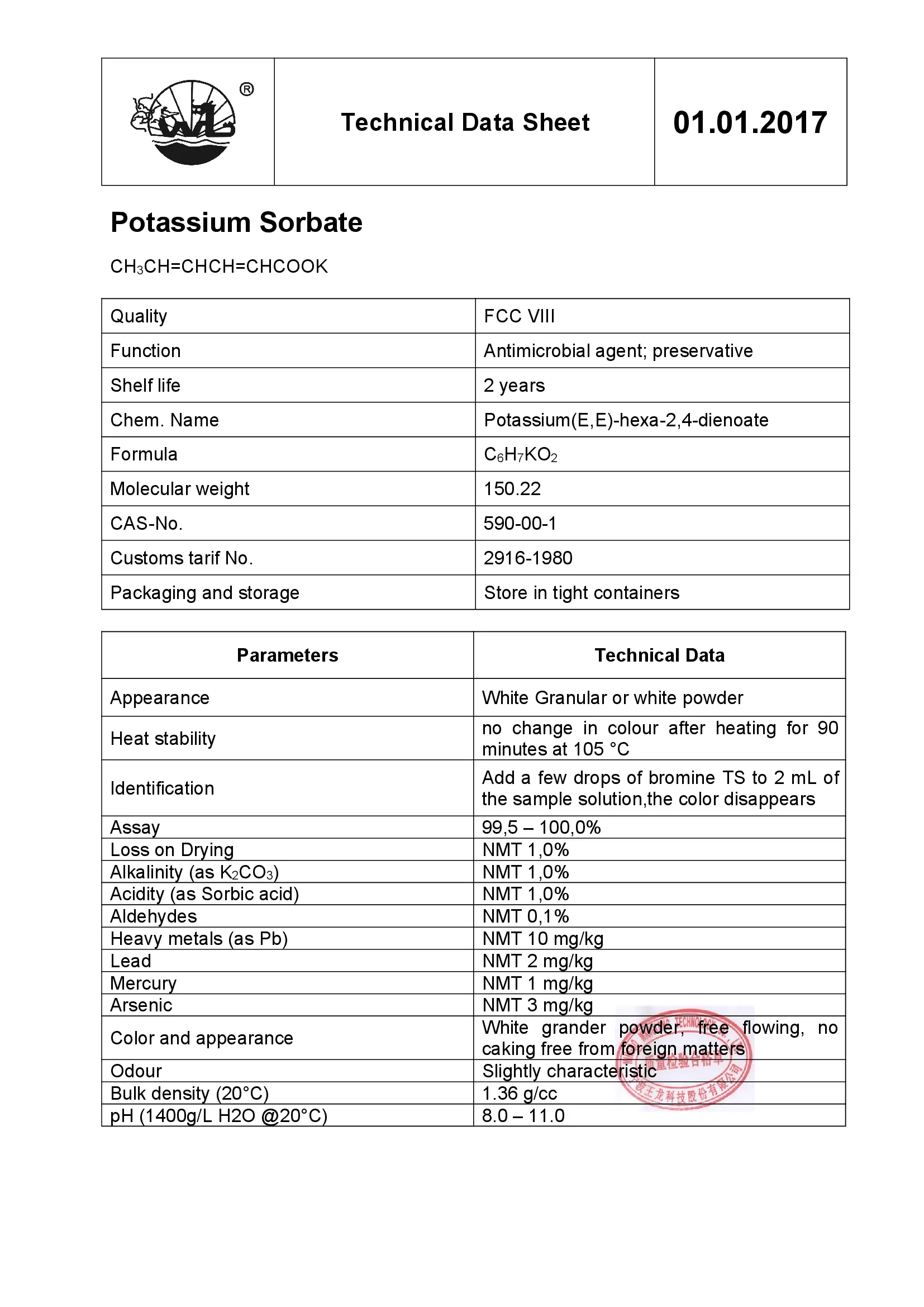WANGLONG / Сорбат калия гранулы Е202