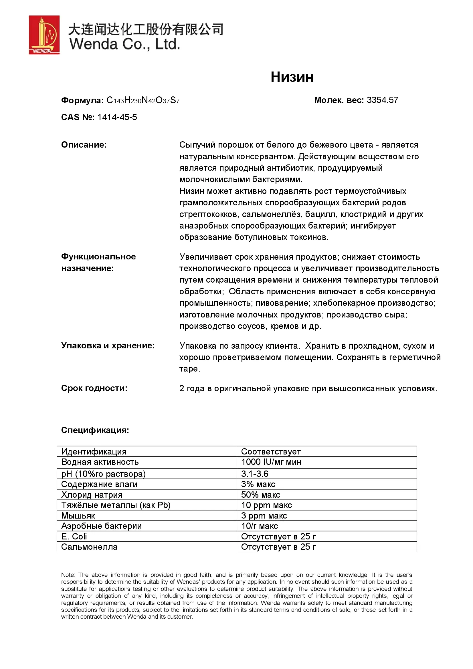 WENDA / Низин Е234, активность 1000