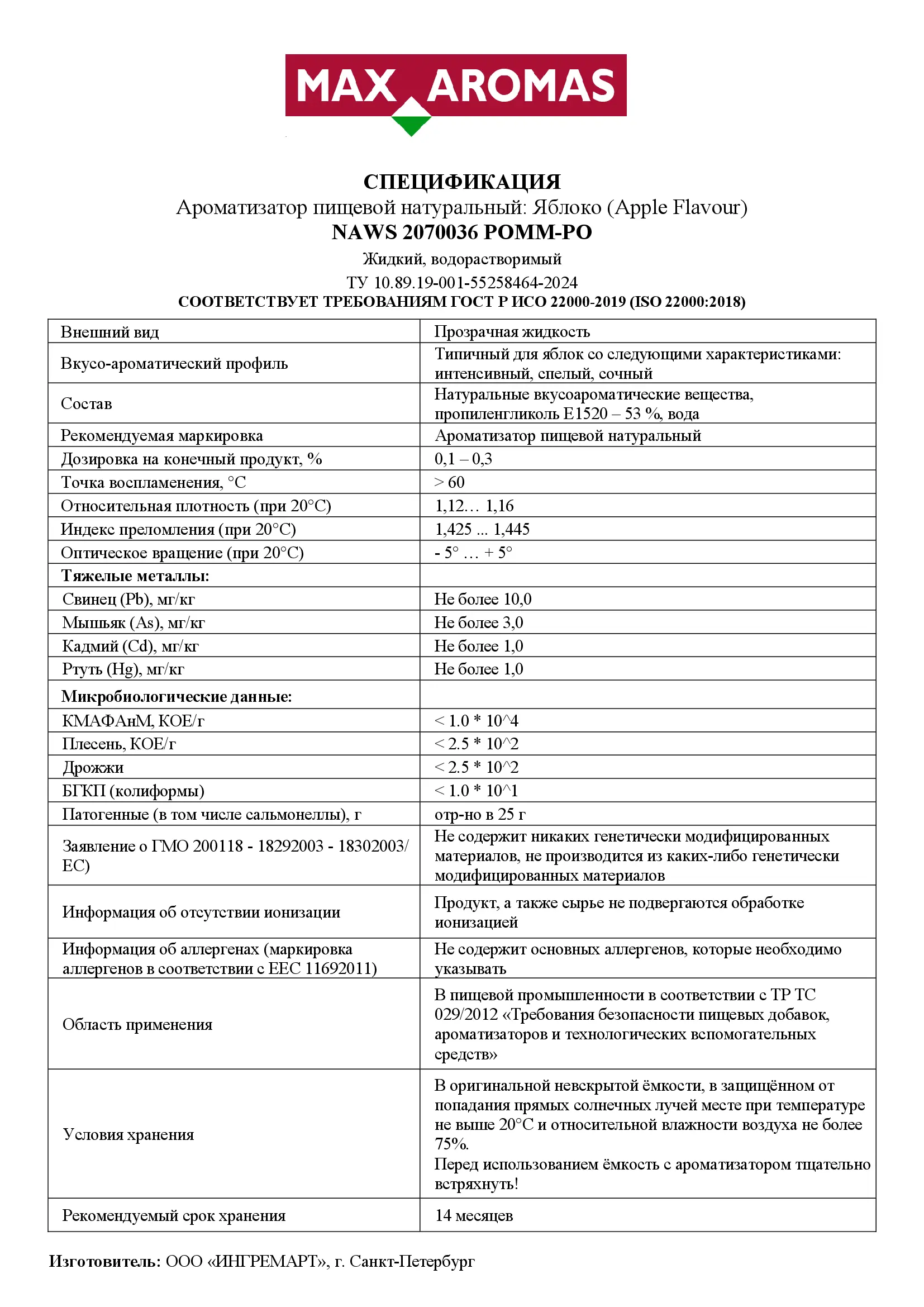 MAX AROMAS / Ароматизатор пищевой Яблоко NAWS 2070036 натуральный, жидкий, водорастворимый, термостабильный