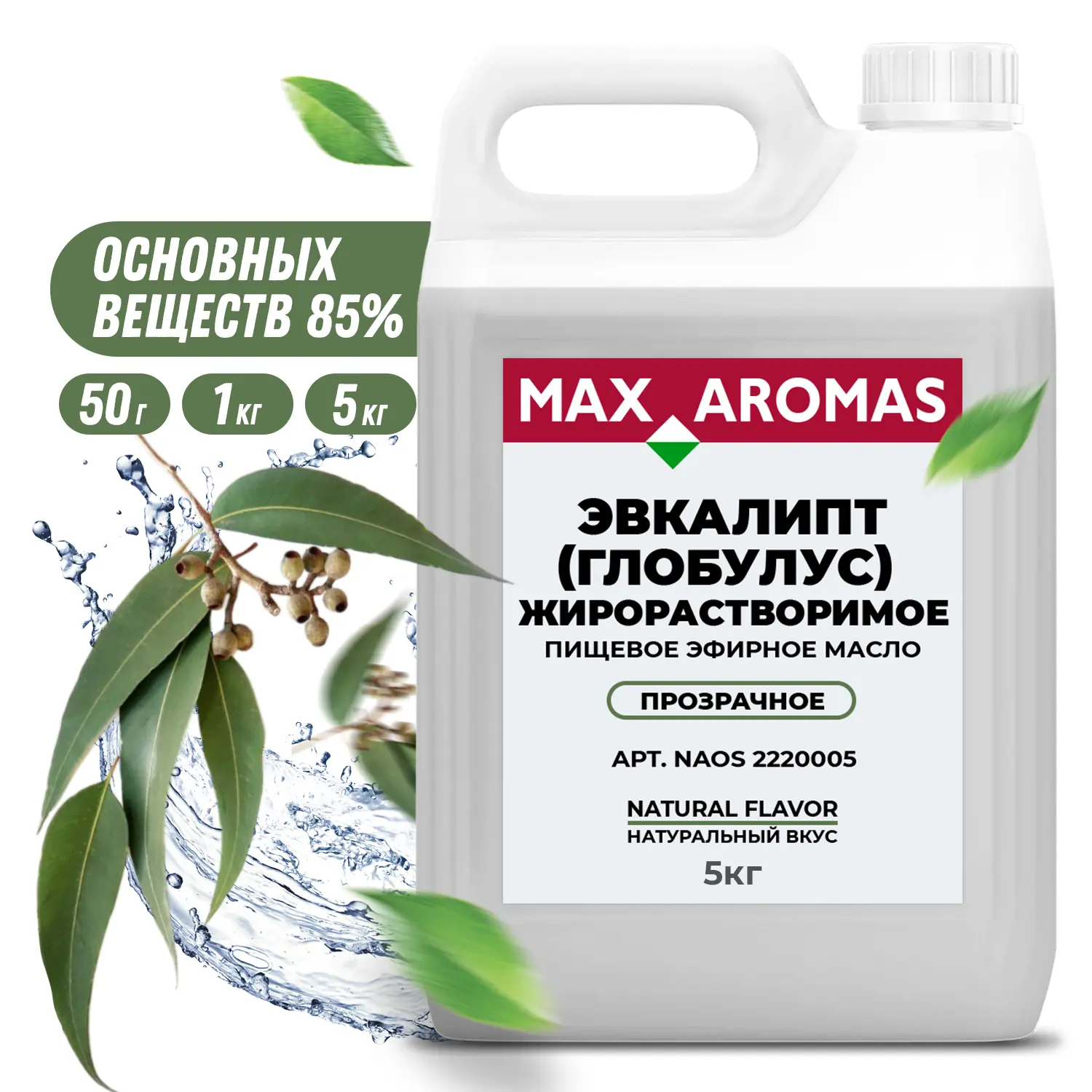 MAX AROMAS / Эфирное масло пищевое Эвкалипт (Глобулус) NAOS 2220005 натуральное, жидкое, жирорастворимое, термостабильное