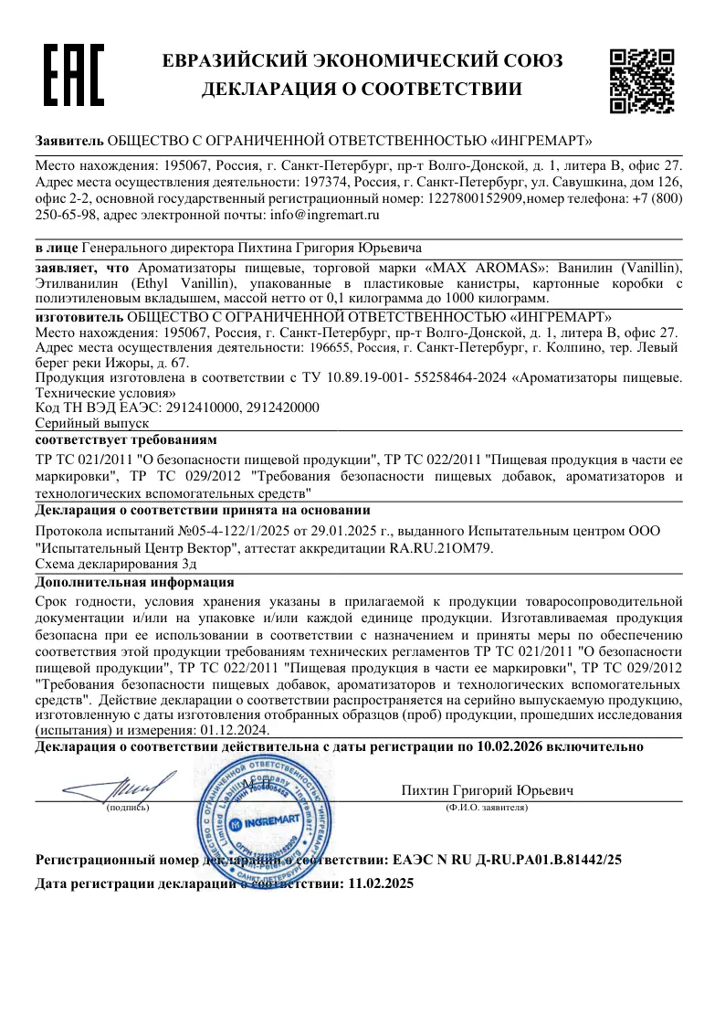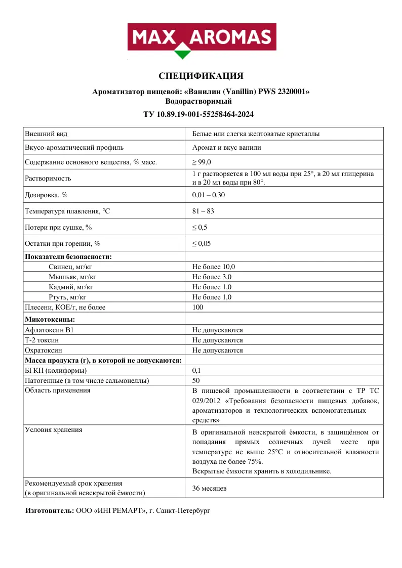 MAX AROMAS / Ванилин кристаллический PWS 2320001
