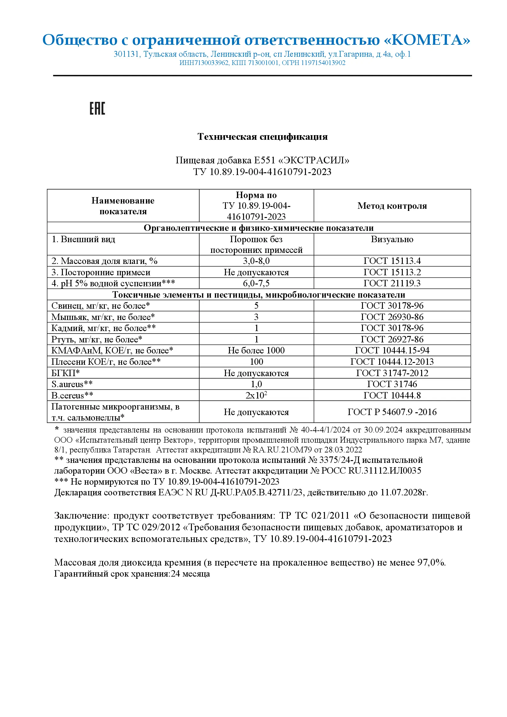 КОМЕТА / Диоксид кремния "Экстрасил"