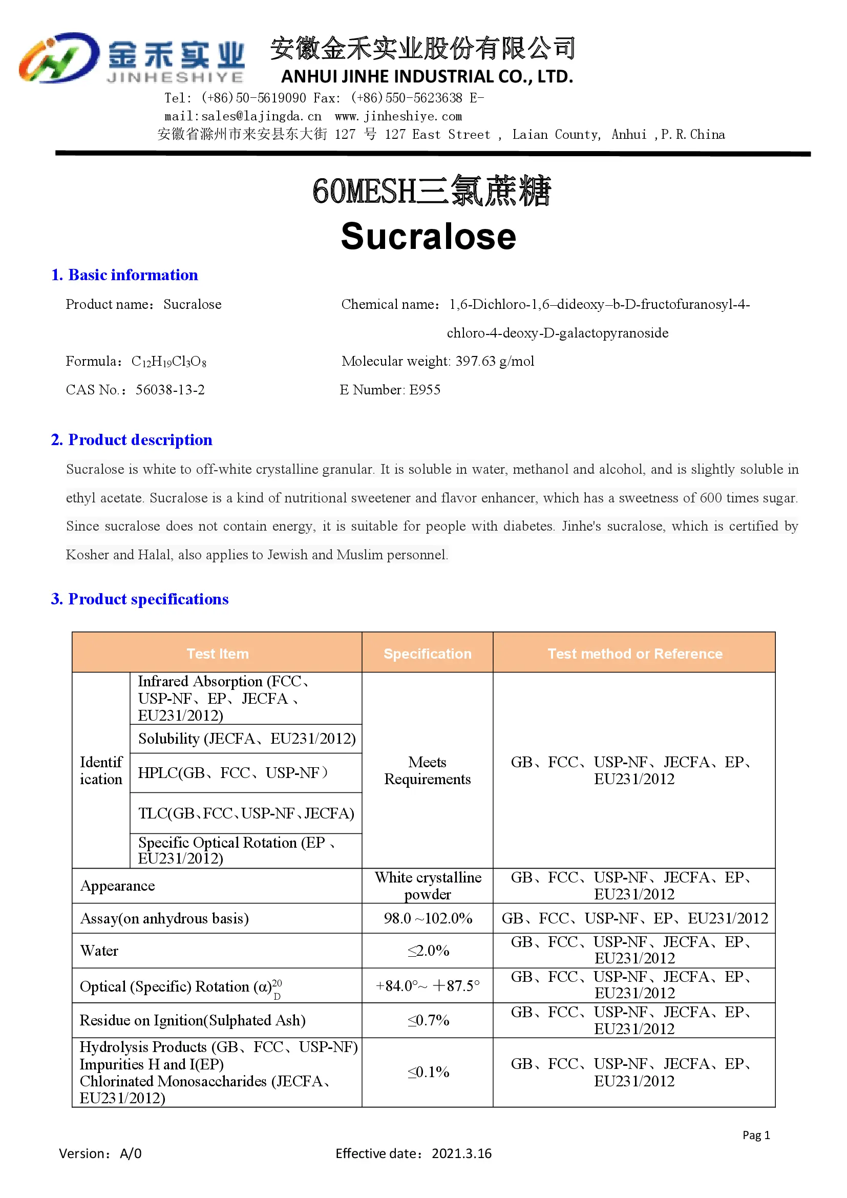 JINHE /Сукралоза E955