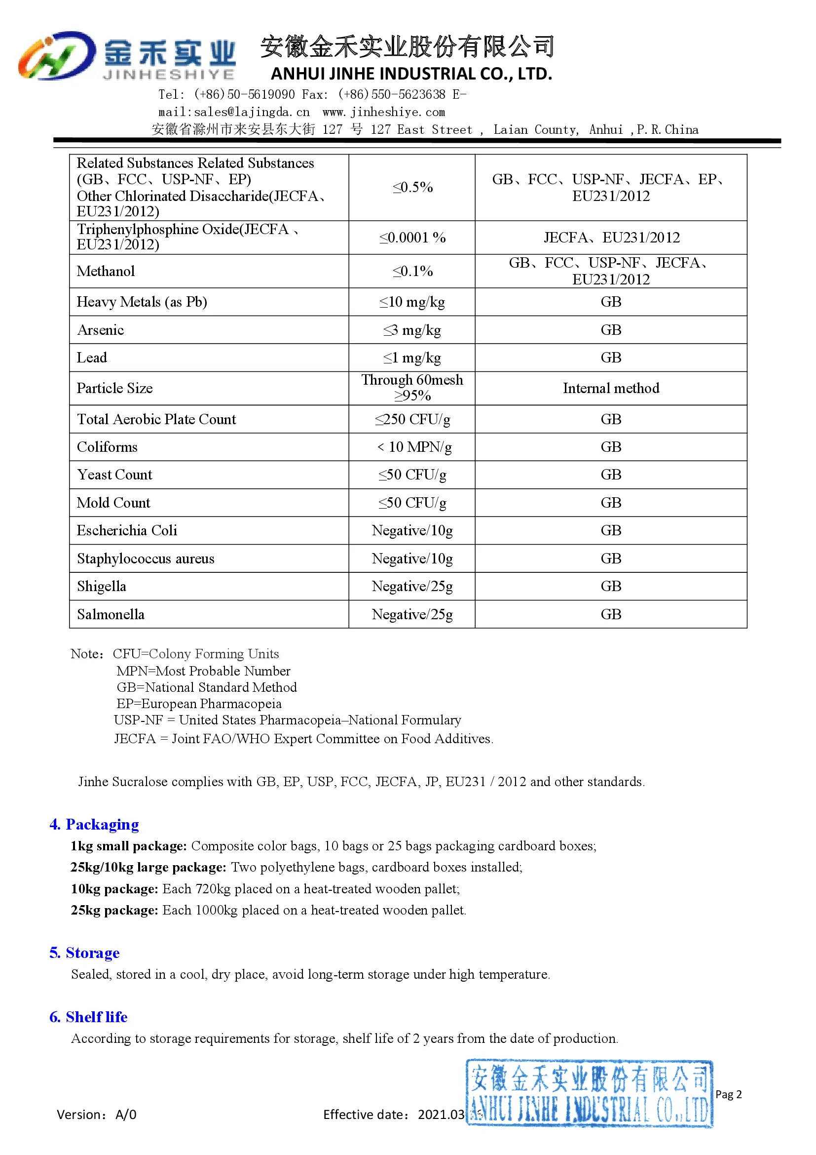 Производственные стандарты: USP39/EP8.0/E955/GB25531/FCC