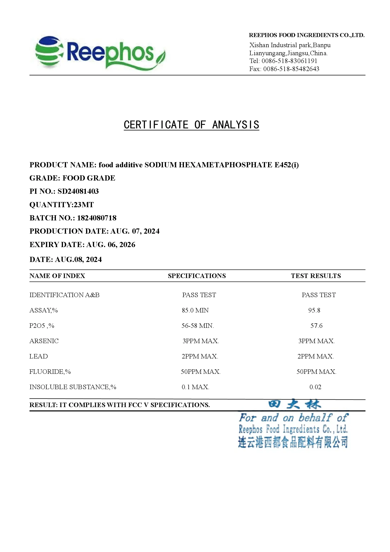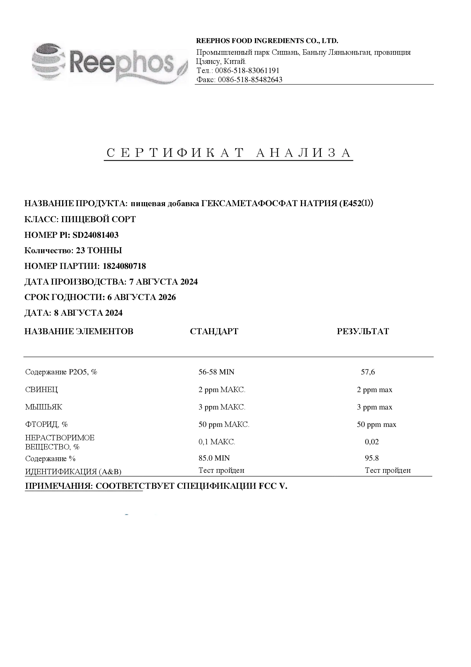 REEPHOS / Гексаметафосфат натрия Е452i, SHMP
