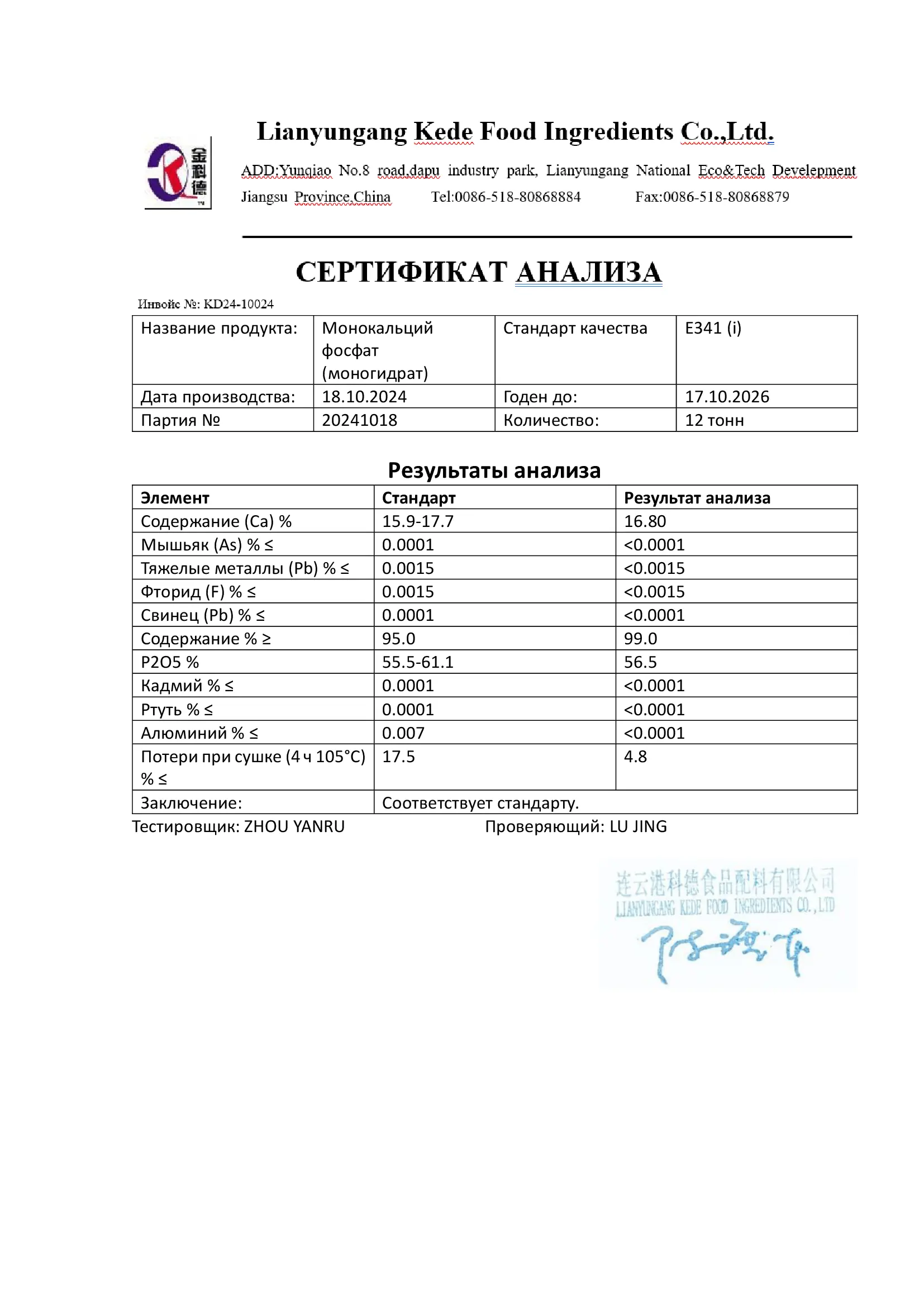 KEDE FOOD / Монокальций фосфат E341i, MCP