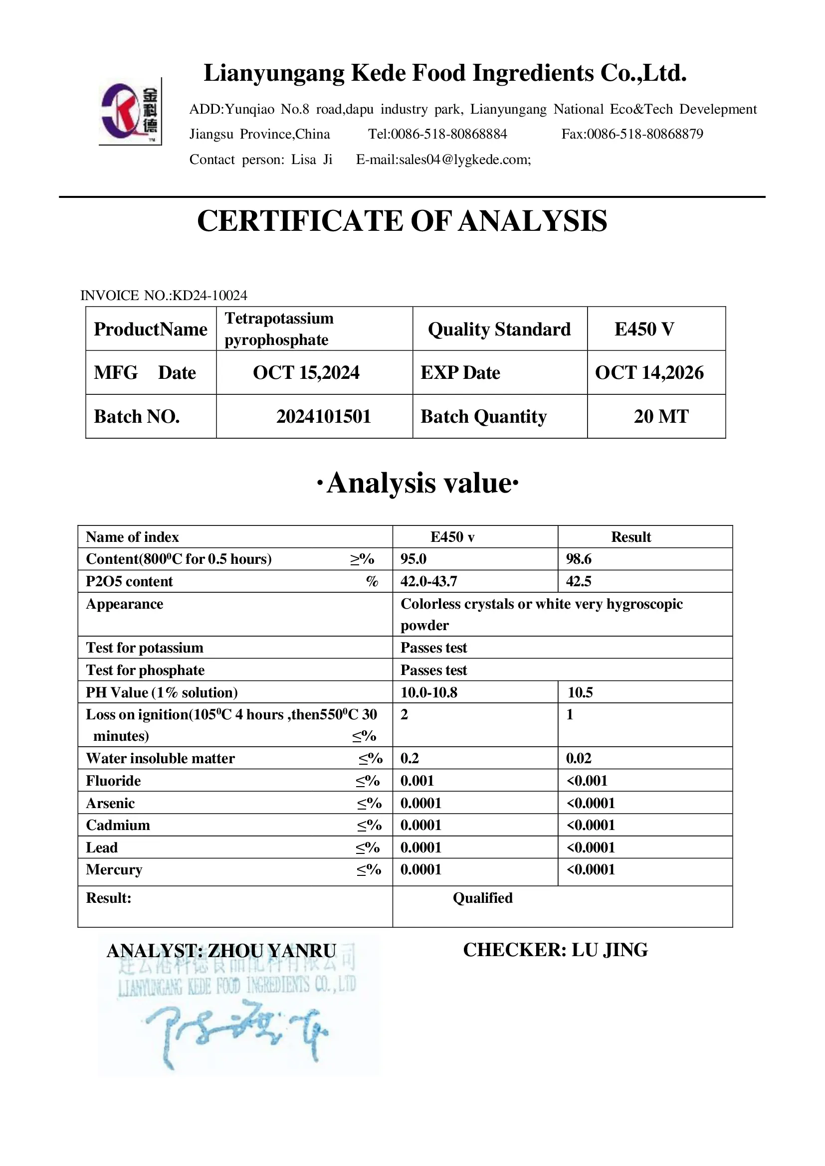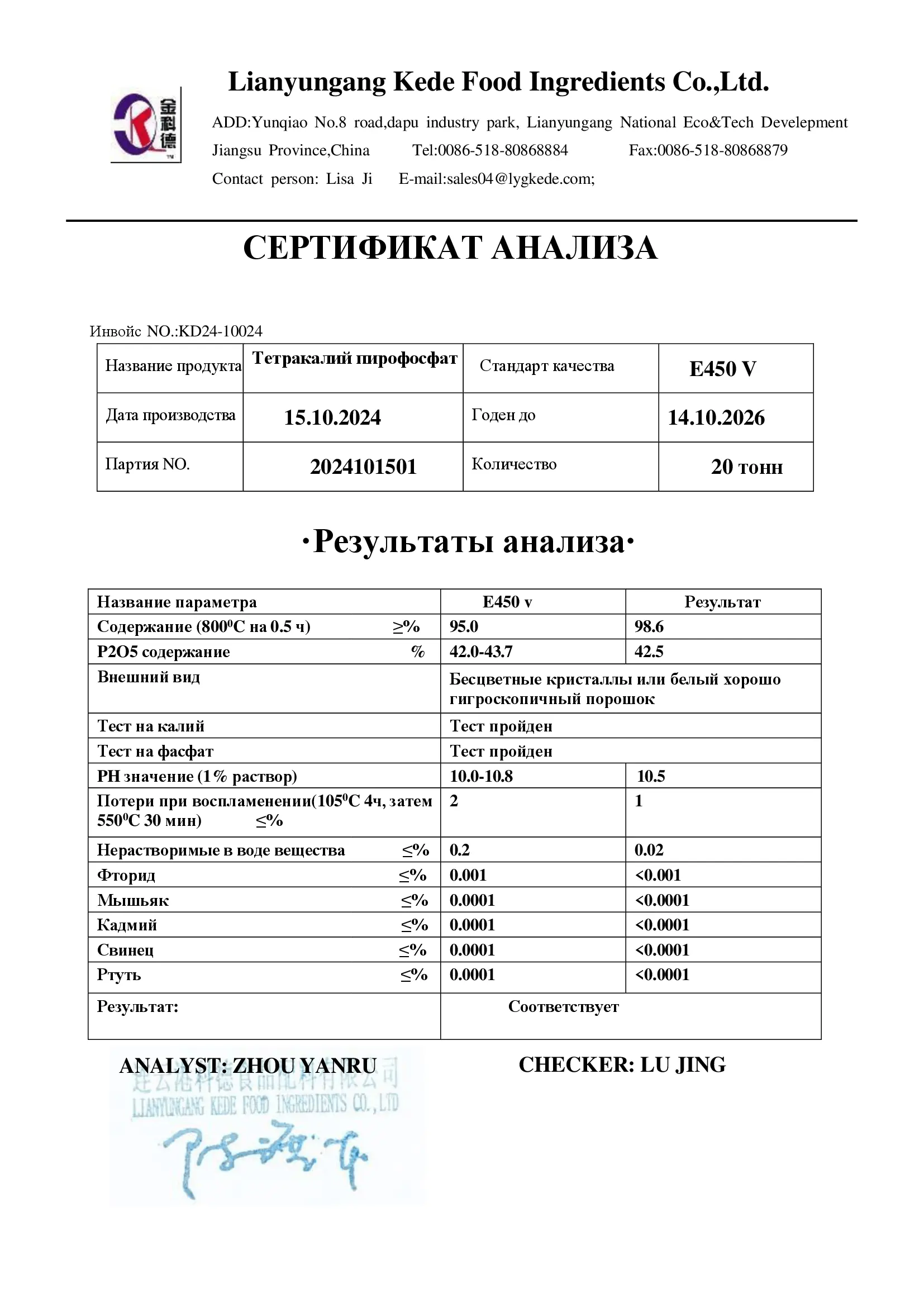 KEDE FOOD / Пирофосфат калия Е450v, TKPP