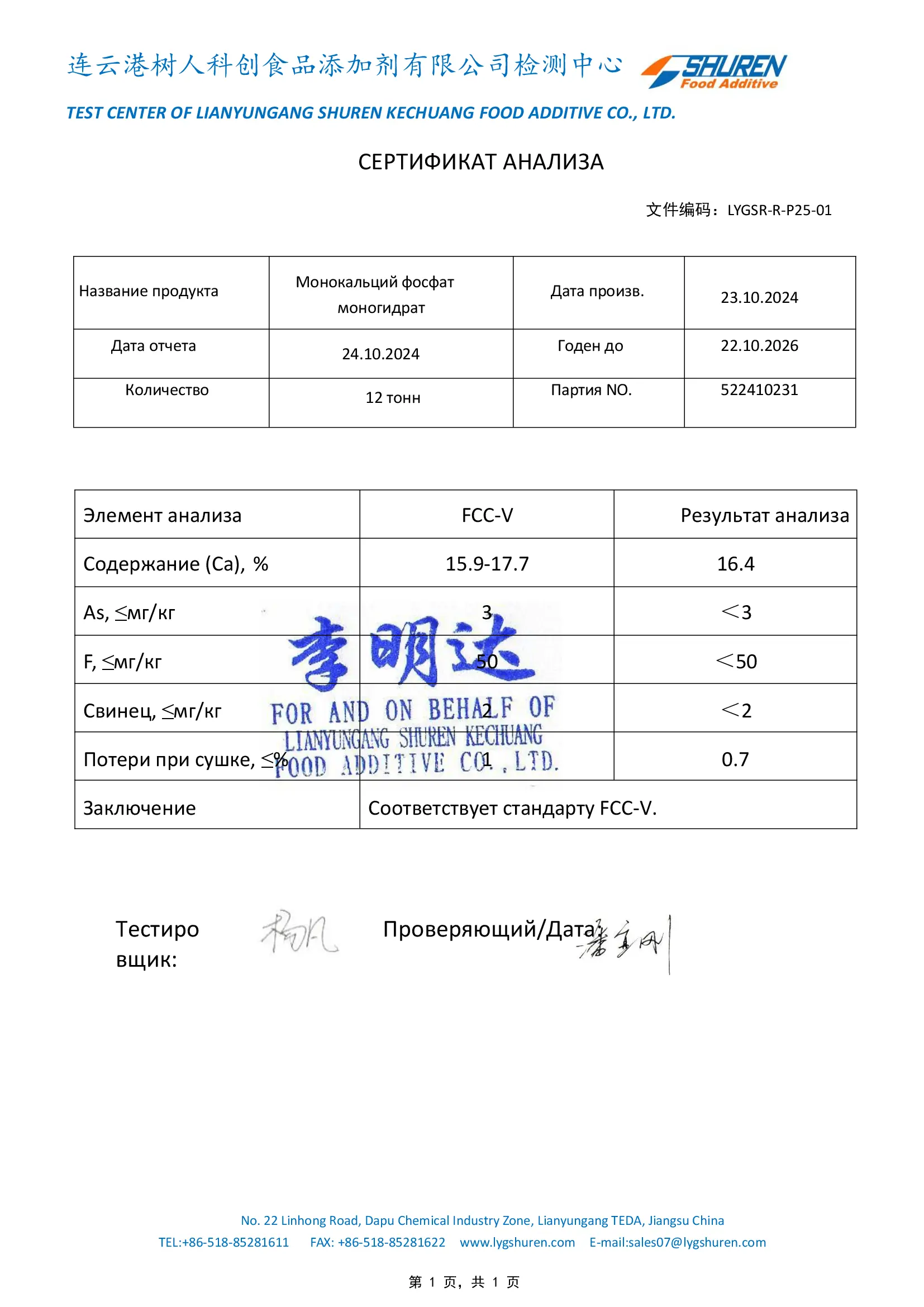 Эмпирическая формула: Ca(H2P04)2 • Н20 (моногидрат)
