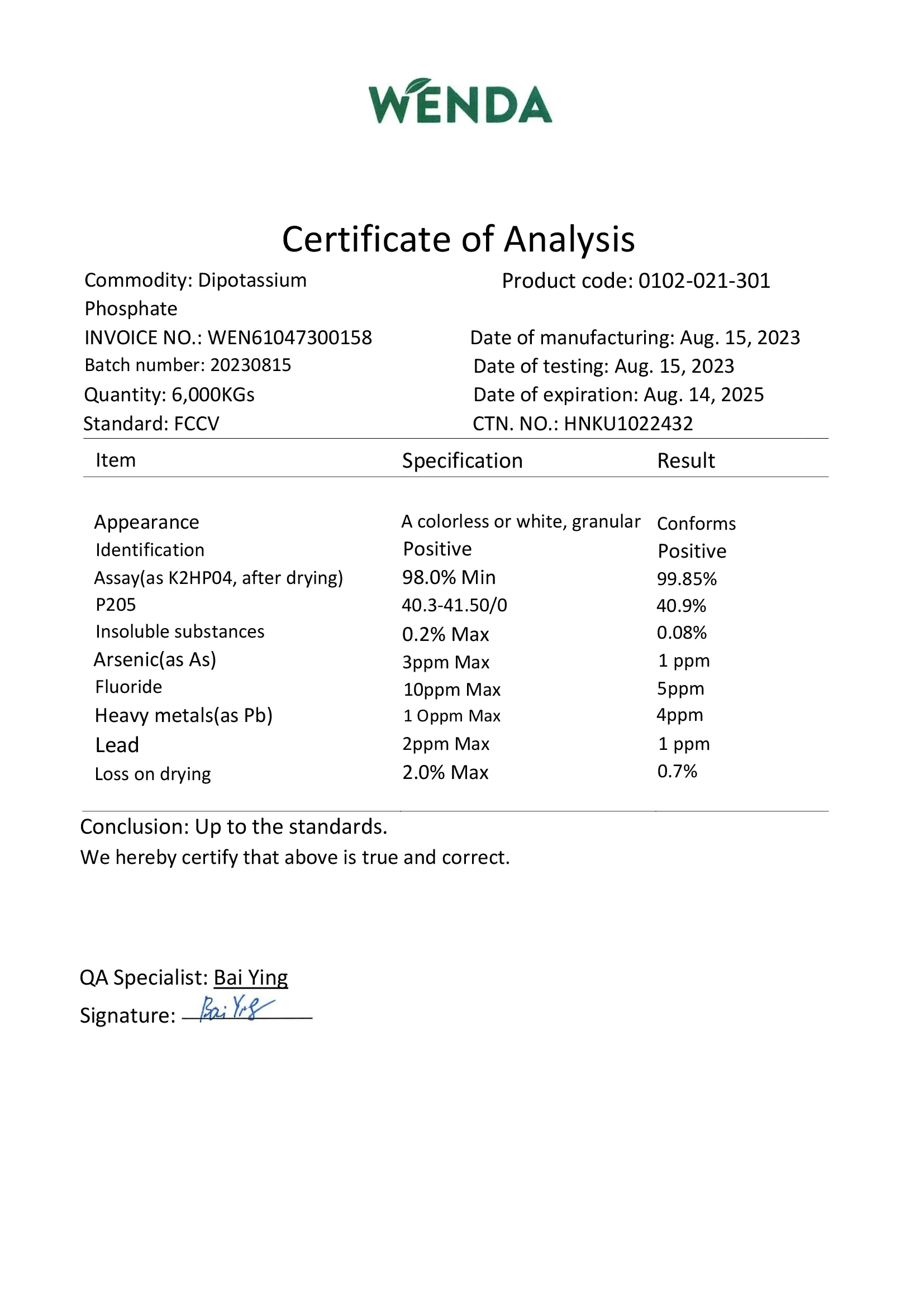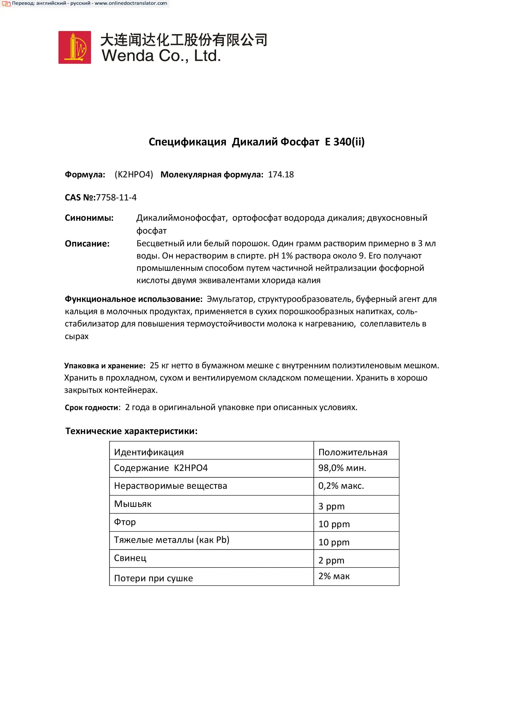 WENDA / Дикалий фосфат Е 340ii, DKP, безводный
