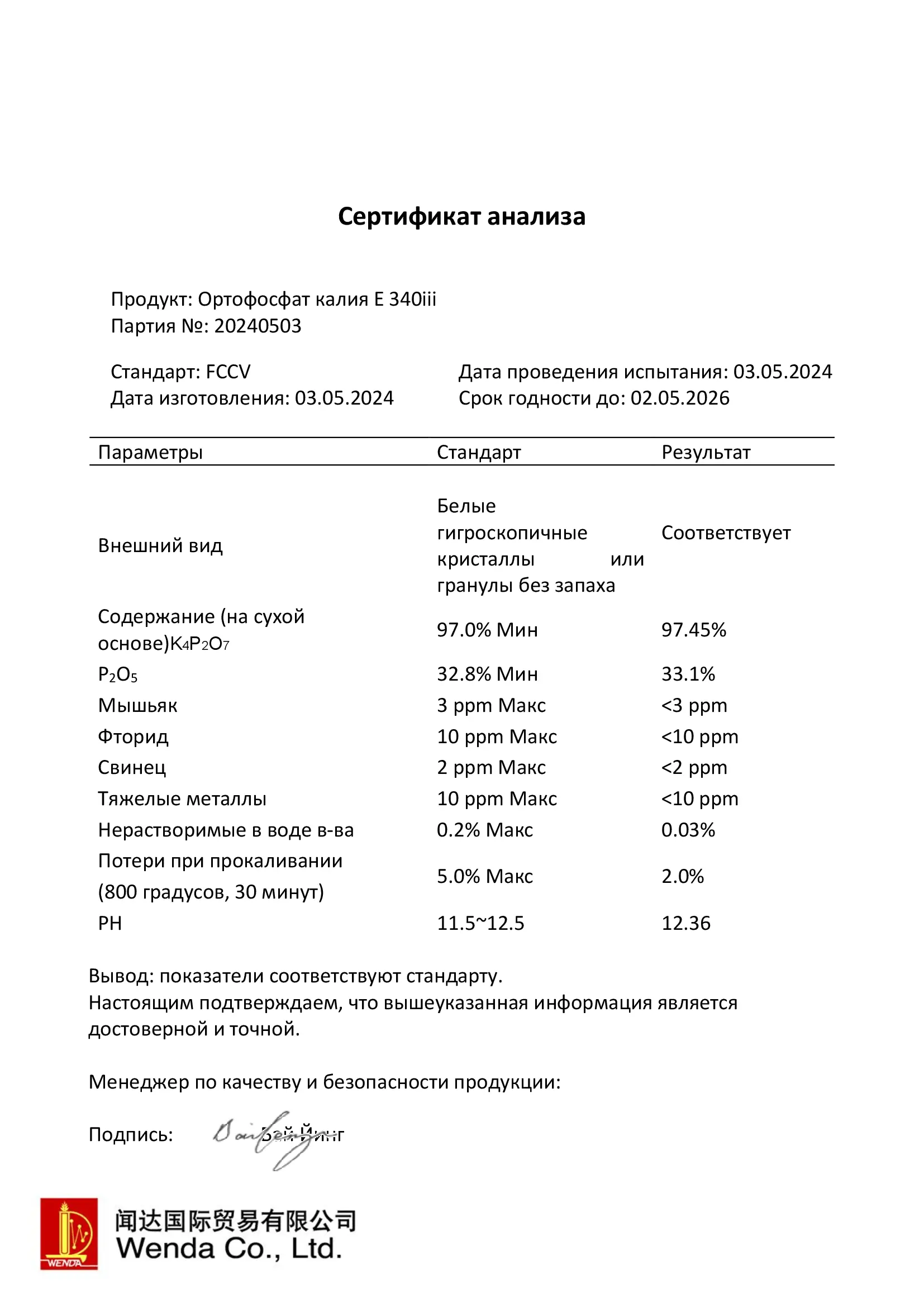 WENDA / Трикалий фосфат Е340iii, TKP, безводный