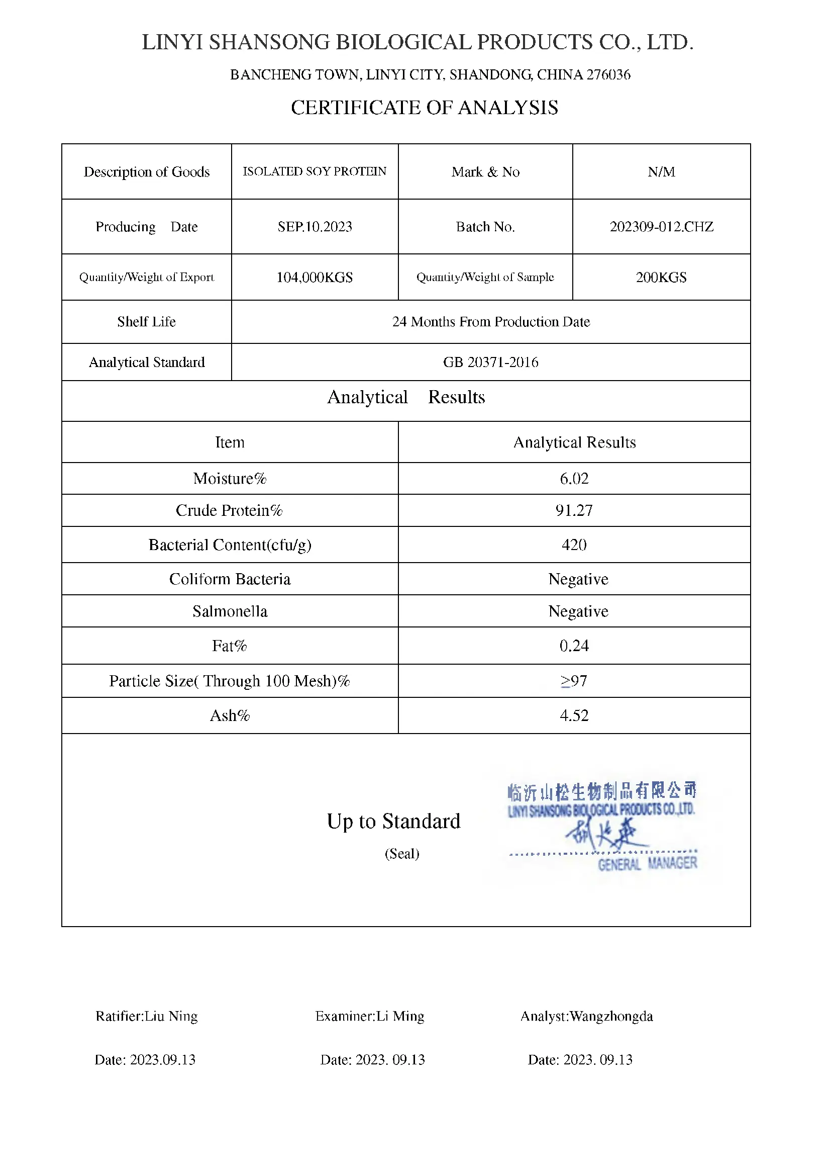 Применение: изолят соевого белка применяется в производстве эмульгированных и грубоизмельченных рыбо- и мясопродуктов различных категорий, молочных продуктов, хлебобулочных, мучных кондитерских изделий, супов, соусов, йогуртов, сухих напитков, продуктов детского и диетического питания: вареных колбас, сосисок, сарделек и мясных хлебов – высшего, первого и второго сортов; полукопченых, варено-копченых и сырокопченых колбас; рубленых полуфабрикатов (котлет, гамбургеров, фрикаделек, фарша, пельменей и так далее); крабовых палочек, мясных консервов.
