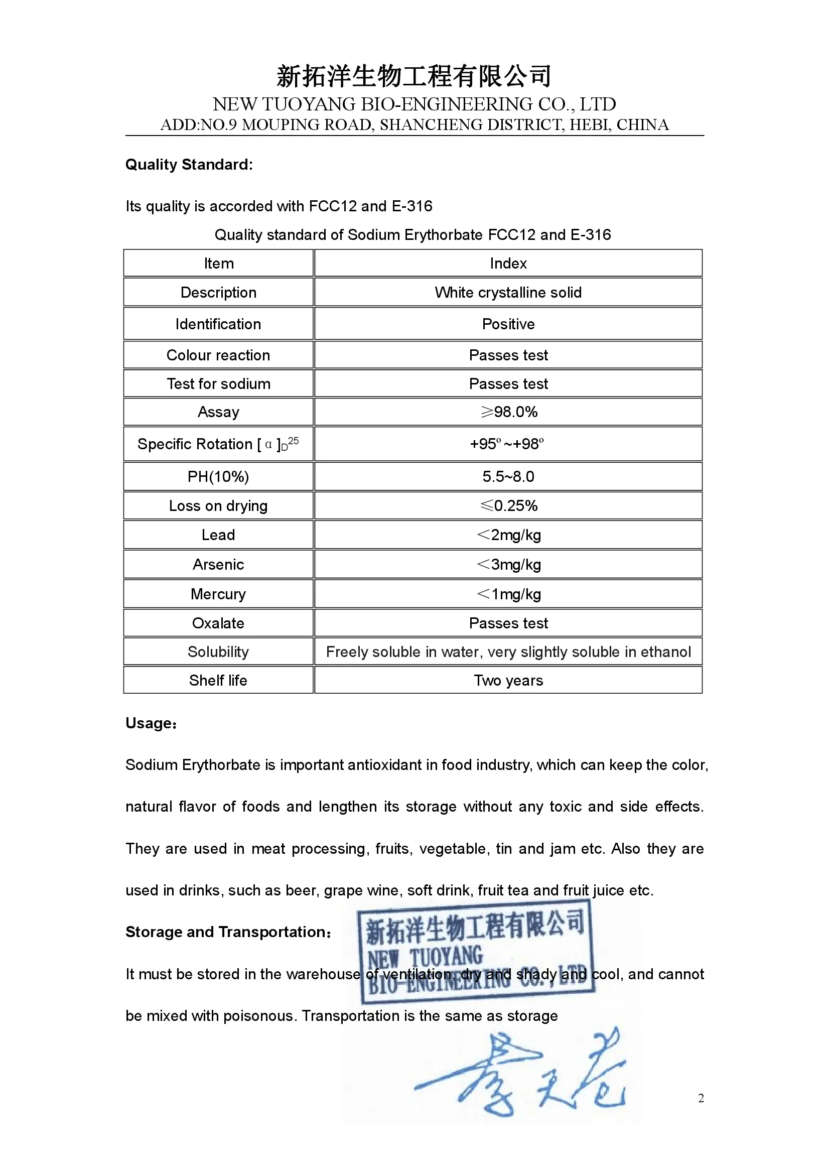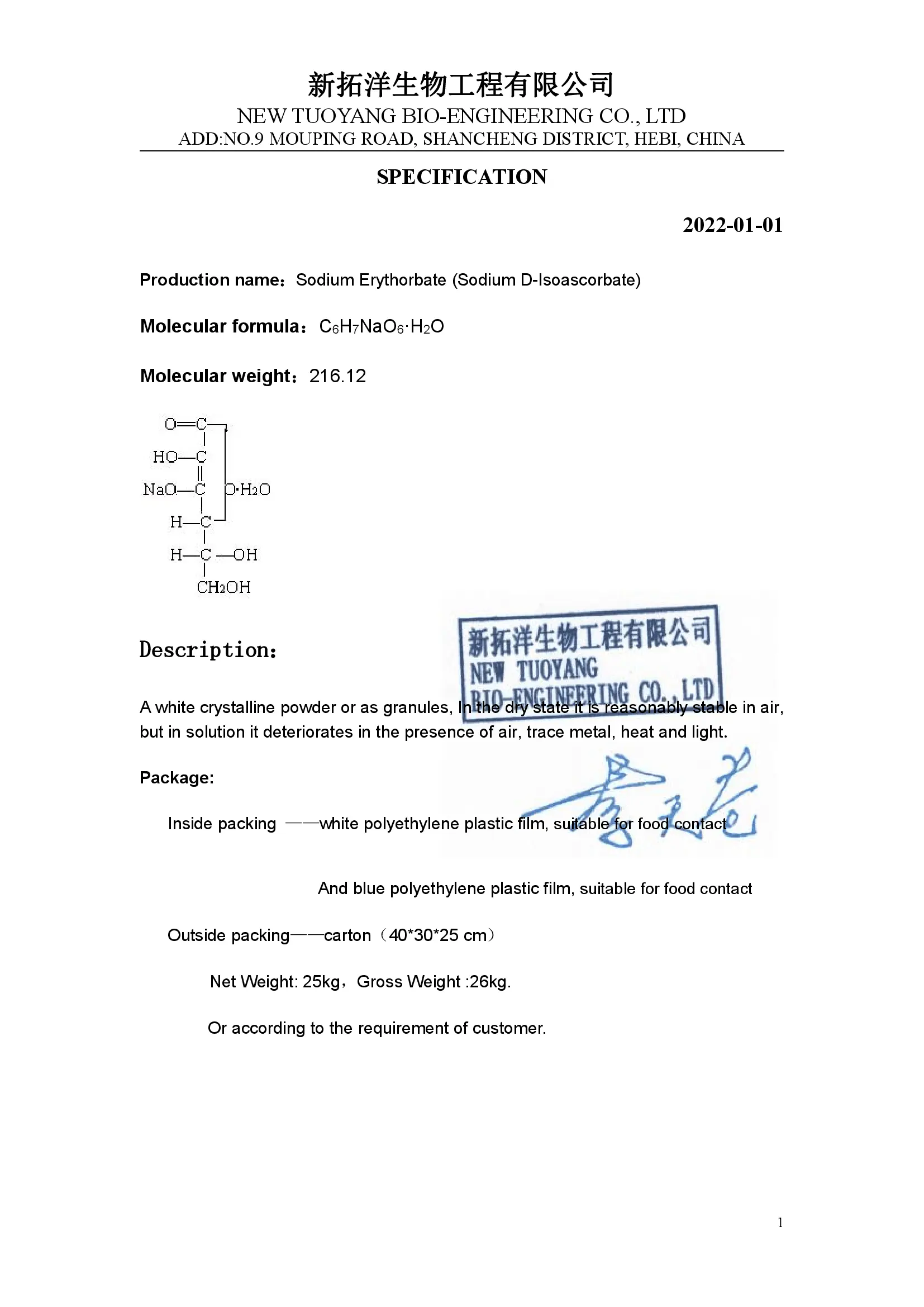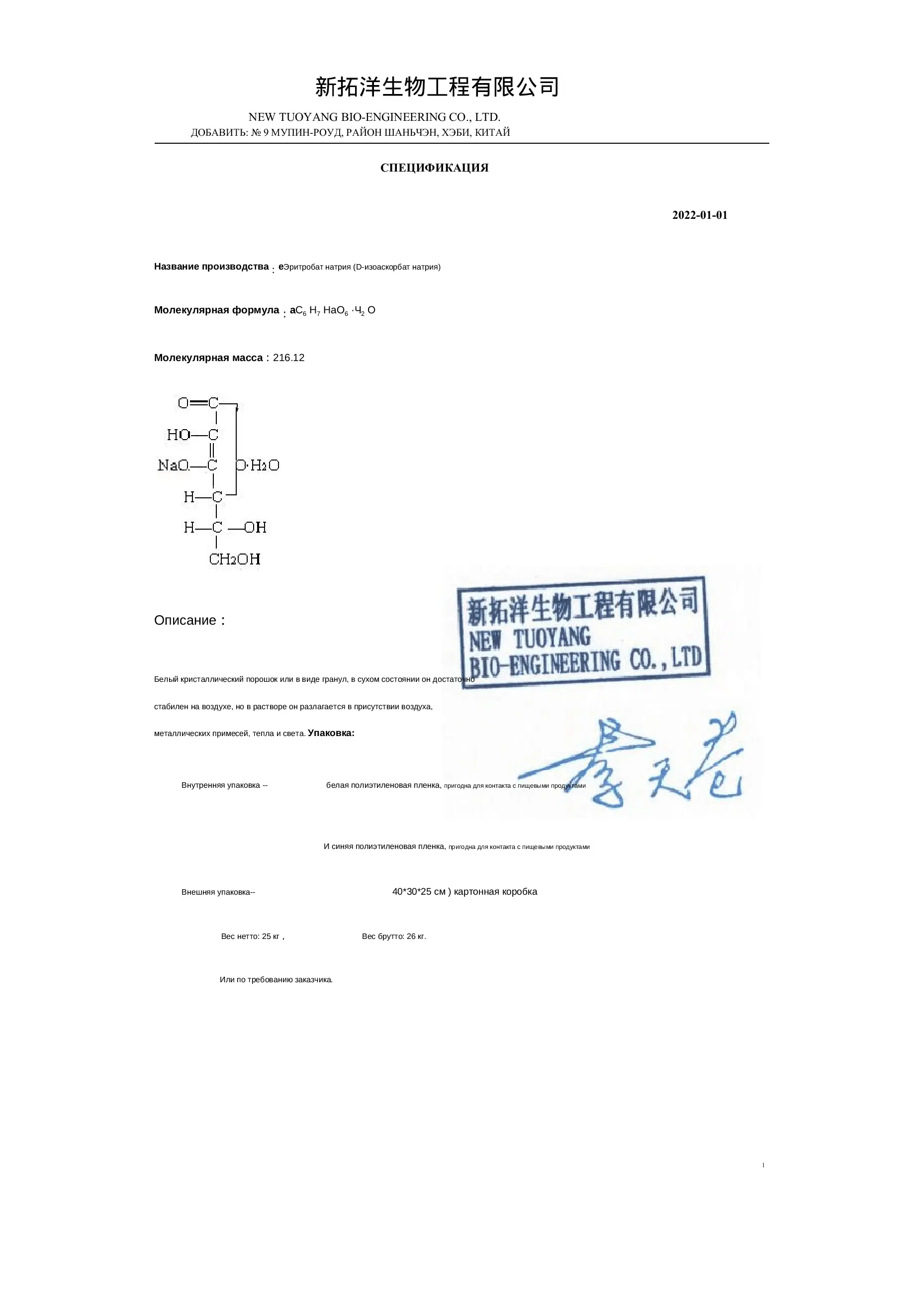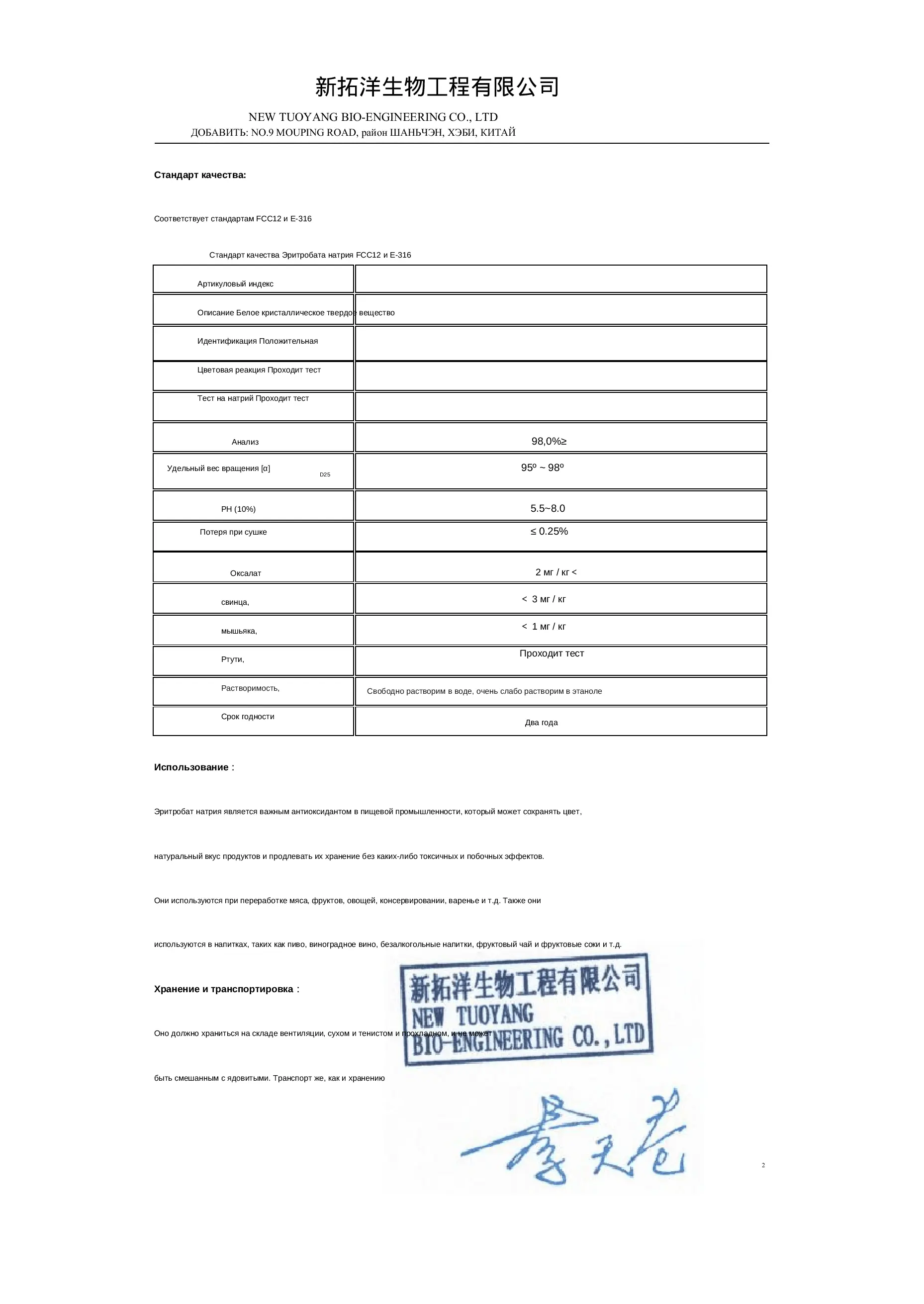 TUOYANG /  Изоаскорбат натрия (Эриторбат натрия) Е 316