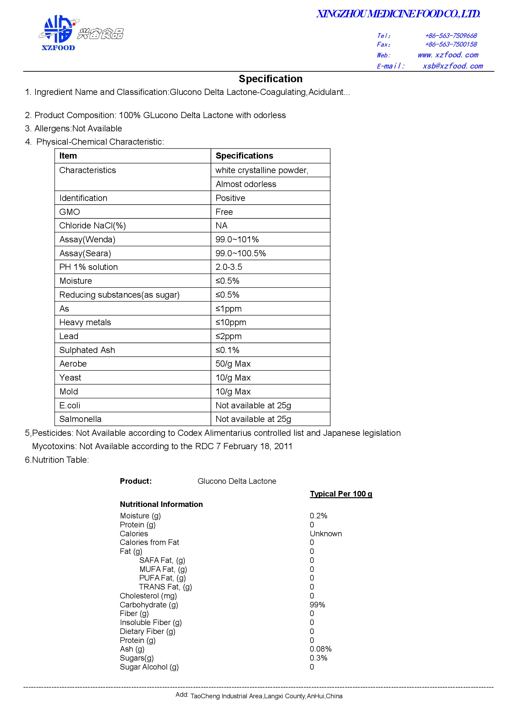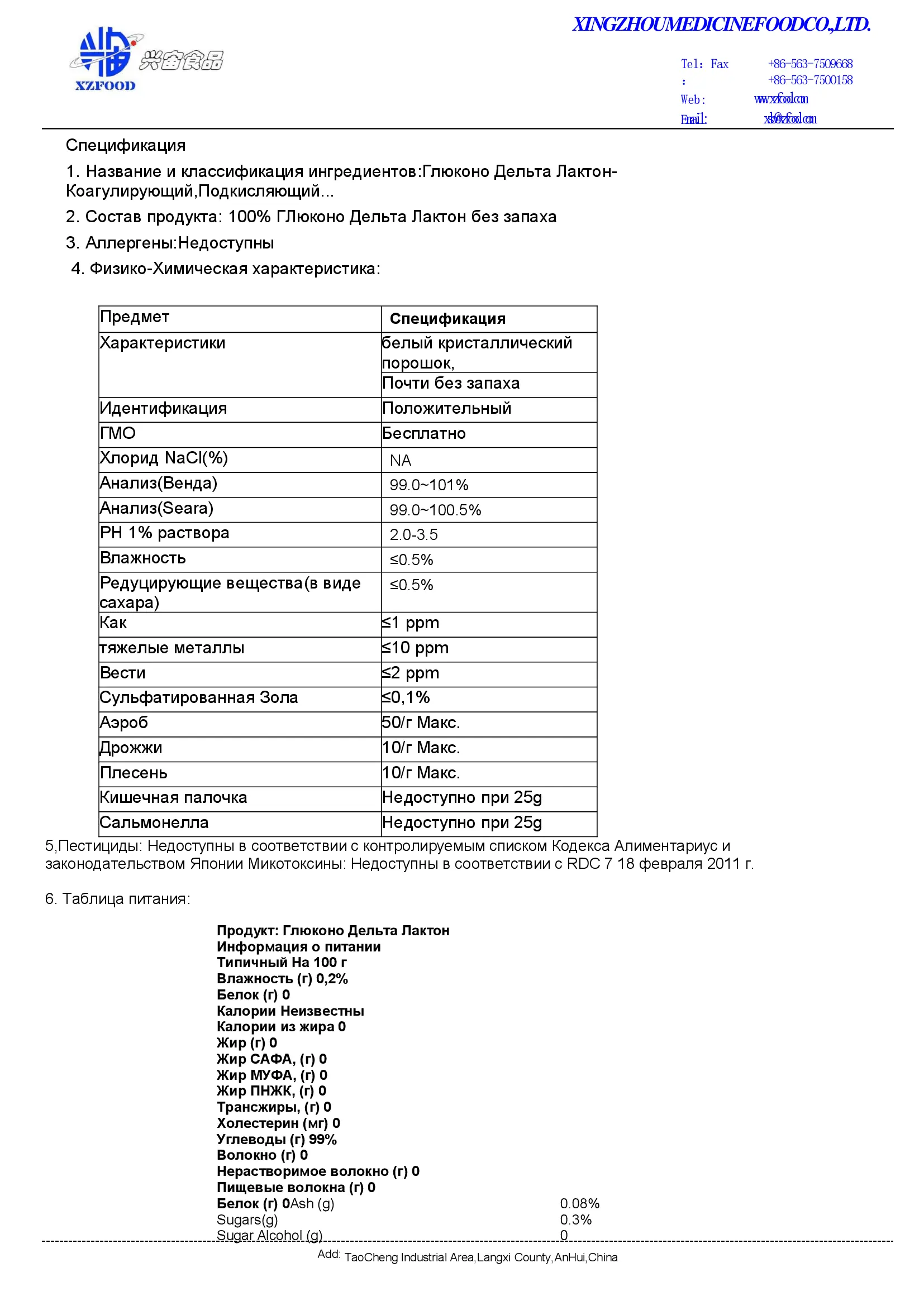 XING ZHOU / Глюконо-дельта-лактон 20-40 mesh Е575