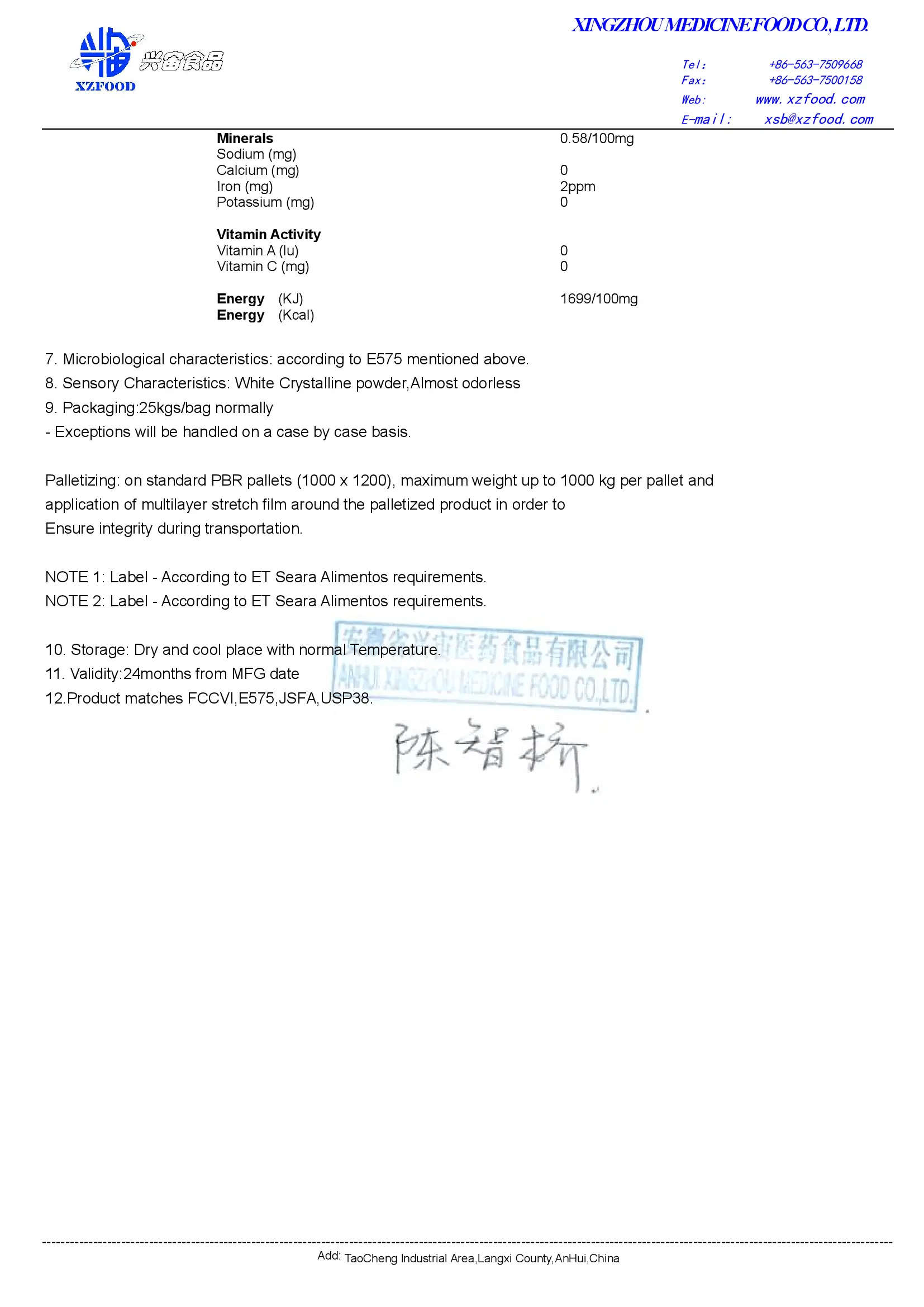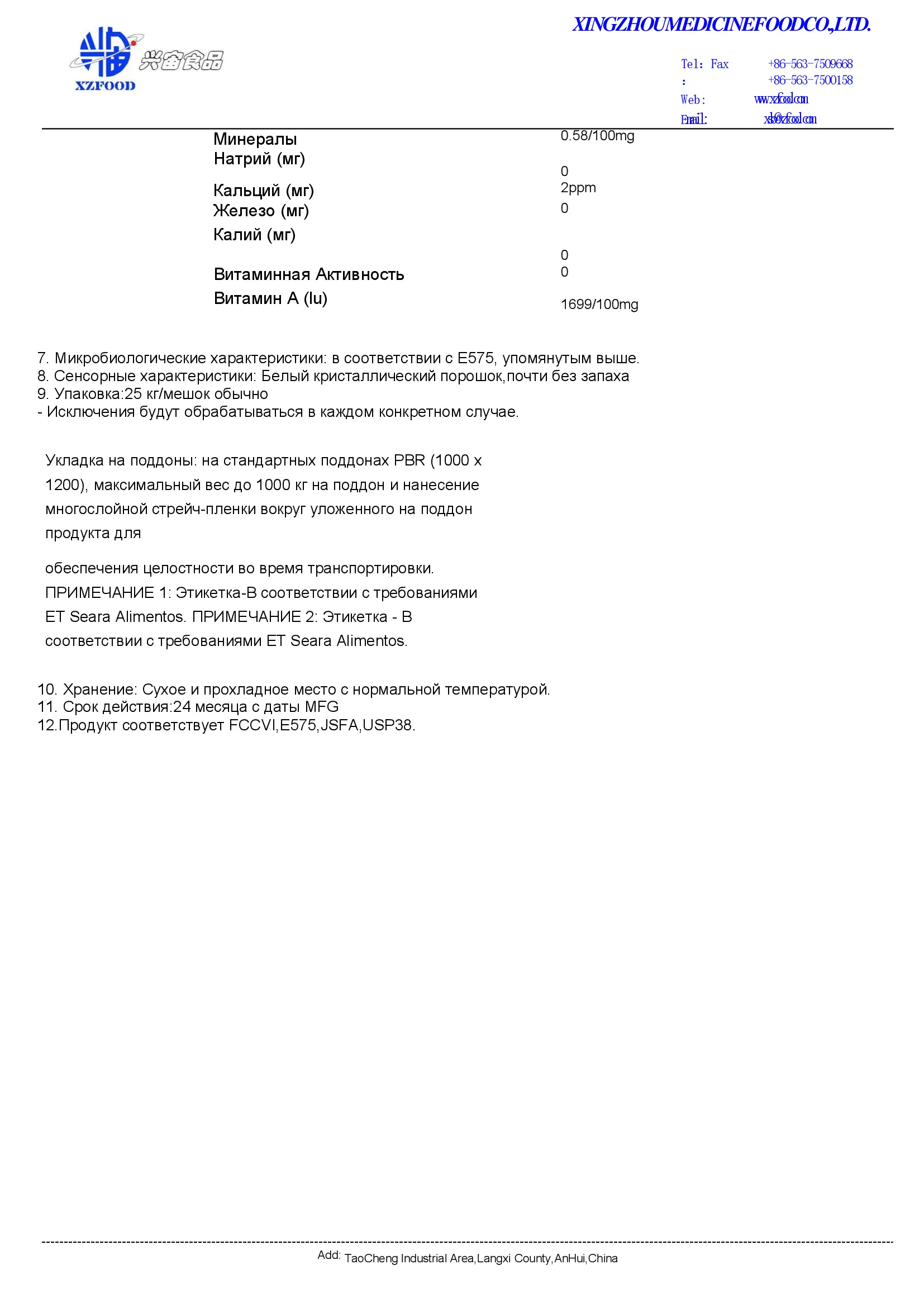 Производственные стандарты: FCC8/USP41/GB7657/E575